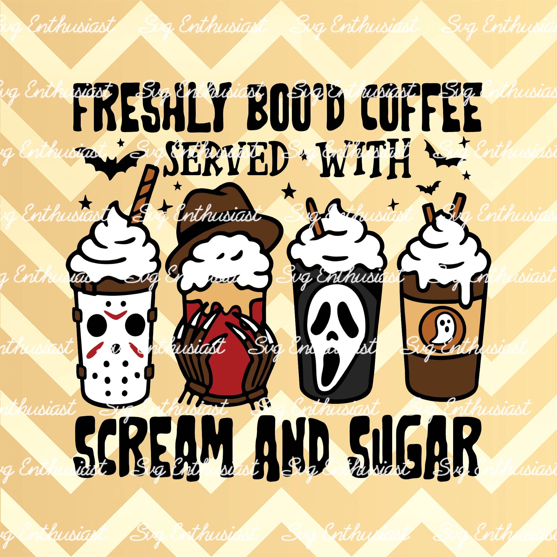 Freshly boo'd coffee served with cream and sugar SVG PNG DXF