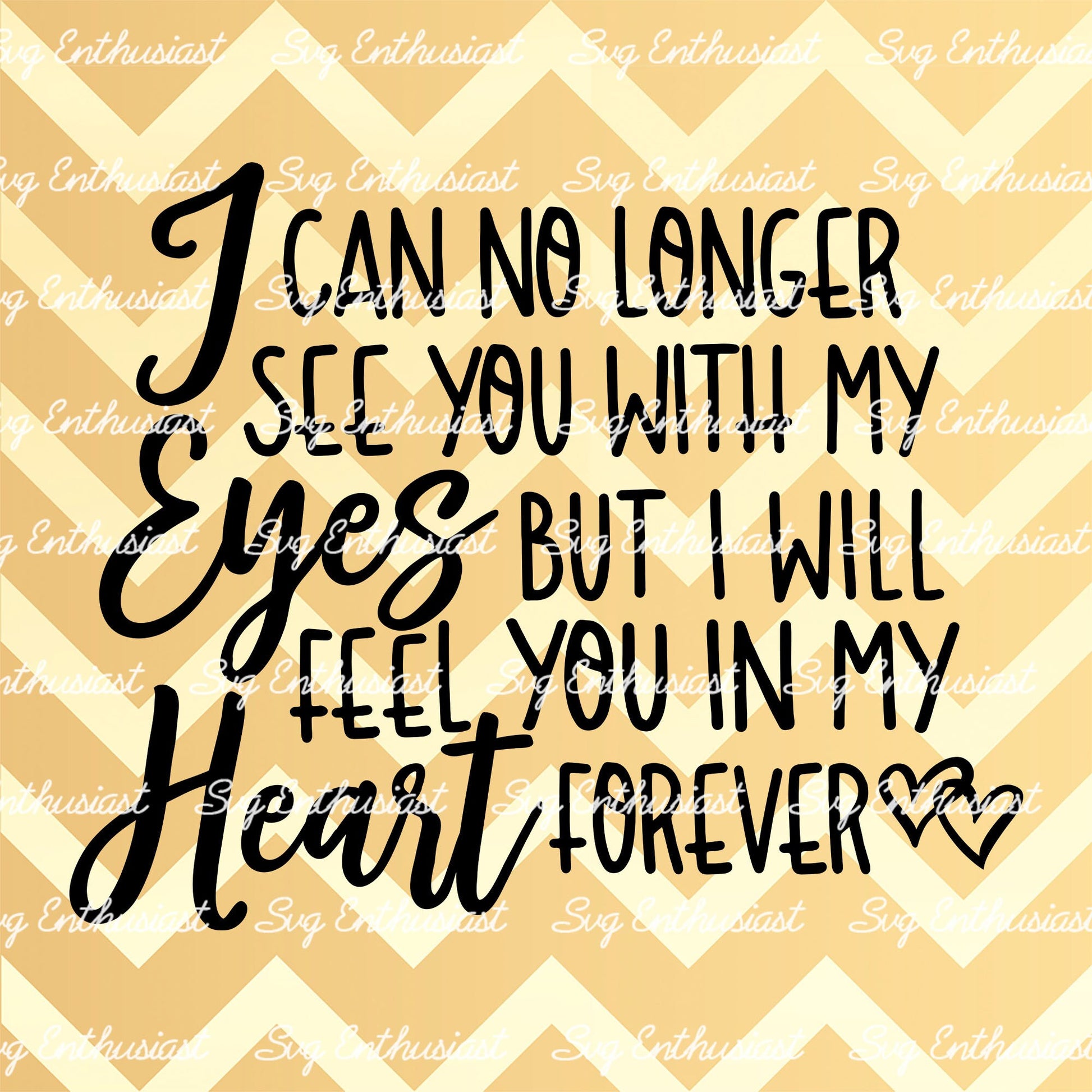 I can no longer see you with my eyes but I will feel you in my heart forever SVG digital cut design.