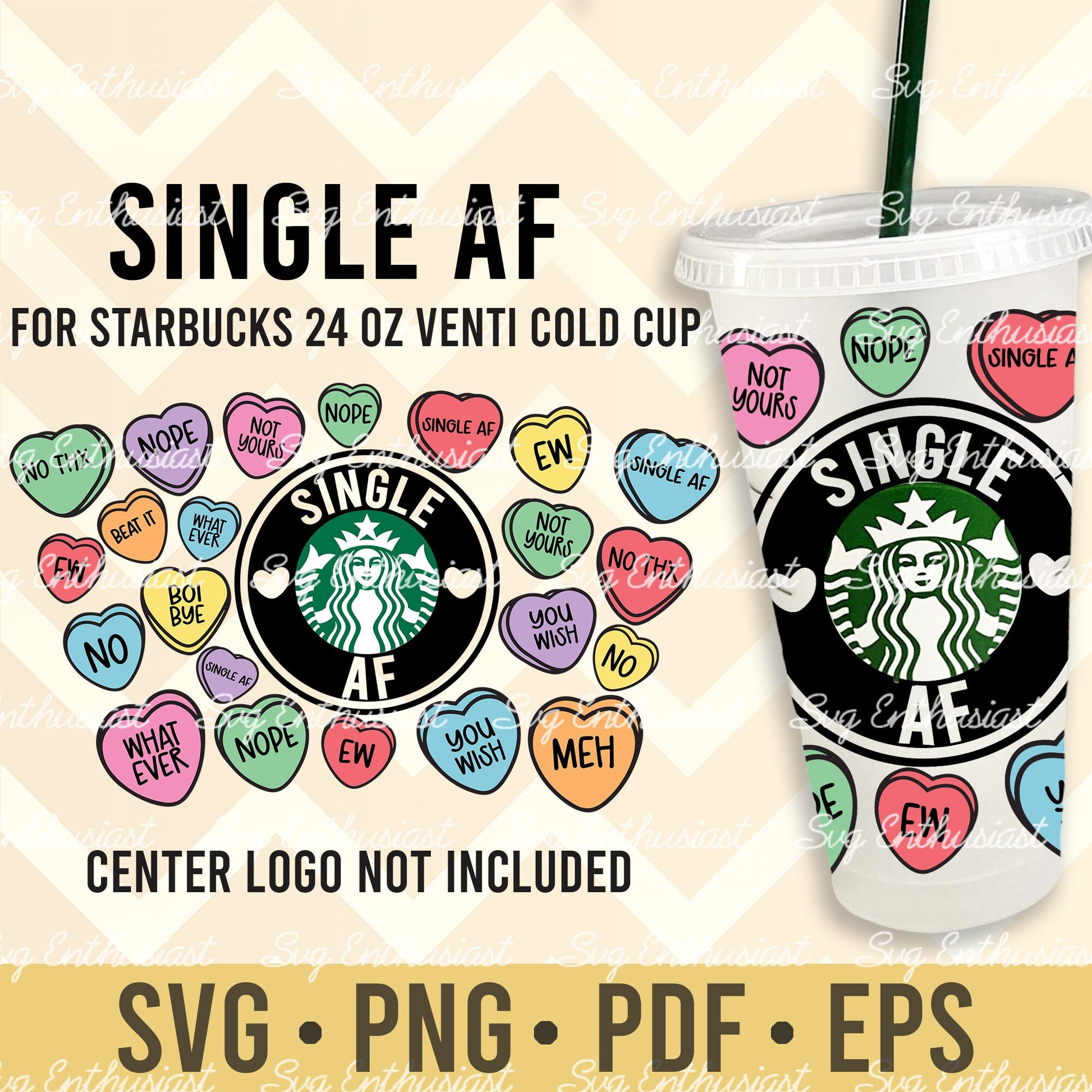 Single AF candy Heart Starbucks Cup Svg, Candy hearts Full Wrap, Funny valentine Decal, Starbucks Venti Cold Cup 24 Oz, Acrylic Cold Cup digital cut file.